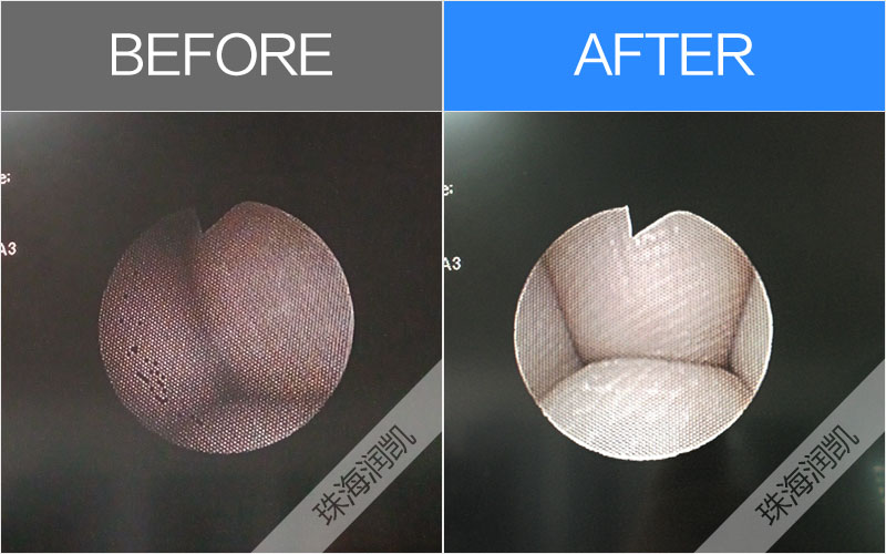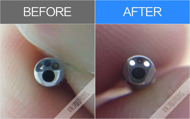 實測故障:1.圖像大量黑點;2.蛇骨斷裂,角度彎曲異常;3.插入管多處漏水;4.橡皮漏水;5.導光束暗斷約25%,出光透鏡發黃;6.鉗道口處有補膠。