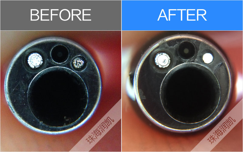 【實測故障1.圖像有大量黑點,龜裂;2.光束暗斷約40%;3.插入管根部起皺,表皮老化;4.鉗管受折;5.向上無角度;6.連接環斷裂;7.內鏡嚴重生銹;8.角度系統固定鋼絲組件生銹斷裂;9.螺紋管固定組件長環缺失;10.手柄鉗管座偏位;11.小導光玻片缺失;12.插入管固定組件被更換。
