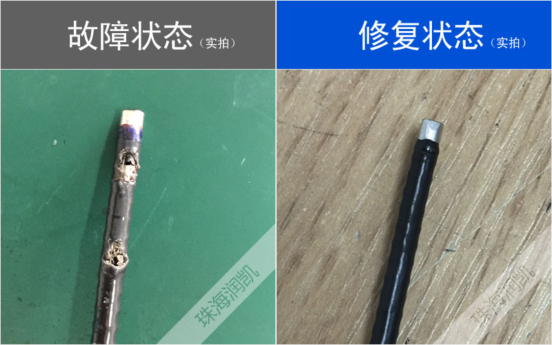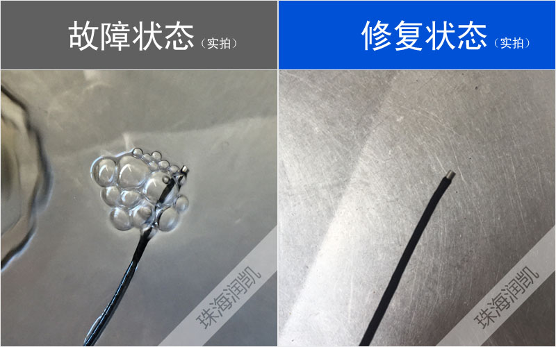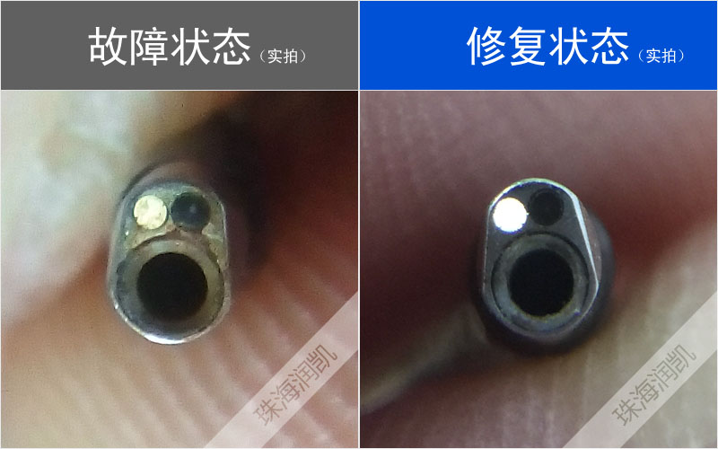 實測故障:1.圖像有1個黑點,發黃;2.鉗子管漏水;3.彎曲橡皮破損漏水;4.蛇骨兩處被擊穿,崩損;5.導光束暗斷約40%。