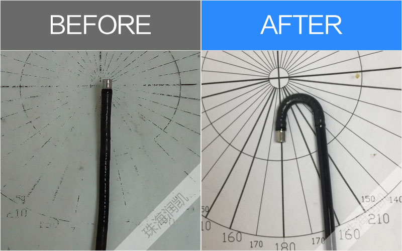 【實測故障】1.圖像模糊;2.彎曲橡皮漏水;3.插入管老化發黃,漏水;4.鉗子管受折;5.無法打角度;6.導光軟管老化發黃;7.內部生銹嚴重; 8.1、2、3號按鈕外皮老化、發硬,2、3號按鈕失靈;9.手柄發黃;10.物鏡、導光玻片有異物附著;11.導光束暗斷約25%,發黃;12.插入管護套老化發硬。